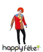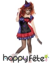 Transformer un personnage sensé être drôle en créature terrifiante est permis lorsqu'il s'agit de célébrer Halloween. Le style arlequin et le look gothique sont associés dans ce déguisement de femme bouffon sinistre. Mesdames, vous aurez l'honneur de porter une superbe combinaison à manches longues. Elle mélange les couleurs rouge et noir à la manière d'un costume d'Arlequin. Cette combinaison bien structurée est accompagnée d'un magnifique col rouge et noir. Pour finir, un petit chapeau de bouffon assorti harmonise la tenue. Le déguisement se marie à merveille avec des escarpins à talons de couleur rouge. Vous pouvez aussi souligner le côté sinistre de votre personnage avec du maquillage. Un large choix de modèles vous est proposé sur le site happyfete.