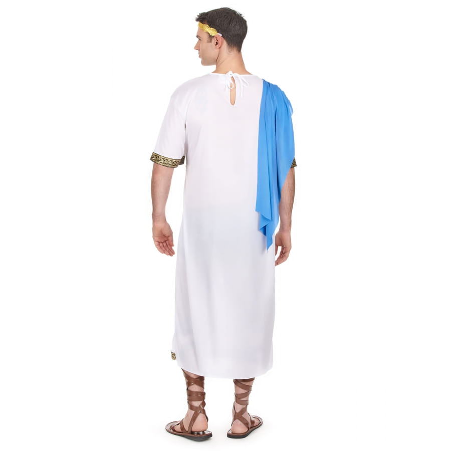 Pour animer vos fêtes entre amis, ce déguisement de Jules César avec toge bleue est un bon choix.
