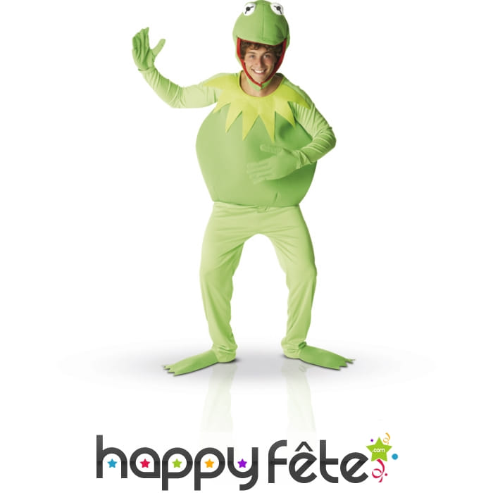 Replongez dans l'ambiance Muppets Show avec ce déguisement de Kermit la grenouille sous licence officielle, style mascotte ! Il comprend 4 pièces indispensables : une combinaison molletonnée, une paire de sur-bottes, une paire de gants et une cagoule molletonnée. Cette dernière est à l'effigie de Kermit et laissera apparaître votre visage. L'ensemble est tout en vert et très fidèle à l'original. Le haut de la combinaison possède une collerette à pointes. Et les couvre-bottes imitent à la perfection les pieds de grenouille. Pour rappel, Kermit est un personnage phare de la série télévisée "Les Muppets Show". Avec ce déguisement sensationnel, vous aurez l'occasion de l'incarner et d'adopter sa popularité durant la prochaine fête déguisée. Notez qu'il est de taille adulte.
