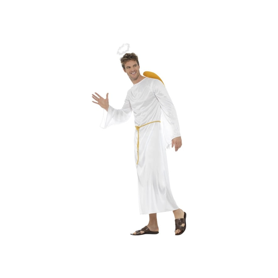 L'ange Gabriel a eu un rôle crucial dans l'accomplissement de la prophétie de Noël. Devenez vous aussi le messager de Dieu pendant les fêtes de fin d'année grâce à ce déguisement de l'ange Gabriel. Vous serez revêtu d'une longue robe à manches longues et évasées. Le vêtement présente une magnifique couleur blanche immaculée. Vous disposerez également d'une paire d'ailes de couleur or qui sont loin de passer inaperçues. En guise d'accessoire final, une petite auréole blanche viendra se placer au dessus de votre tête. Adapté aux hommes comme aux femmes, cet article vous permettra d'interpréter un personnage fondamental dans une pièce pour une veillée de Noël. Vous allez émerveiller les petits et les grands !