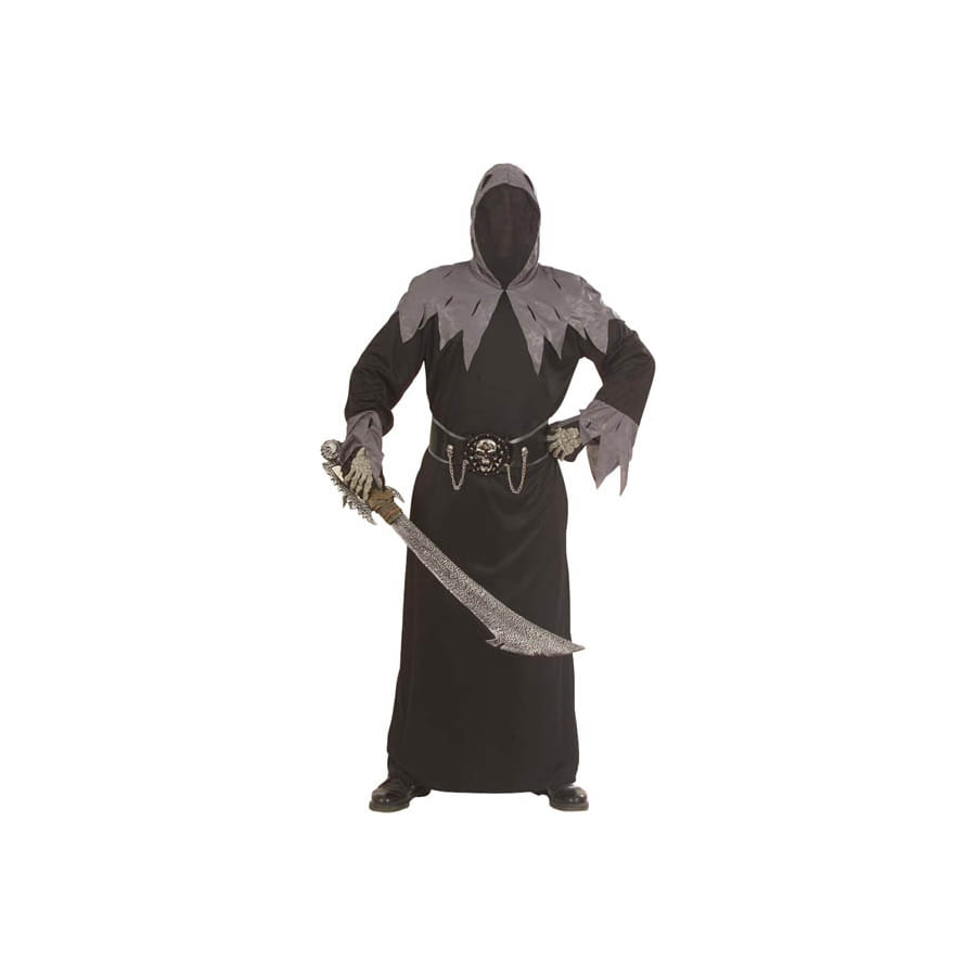 Set de déguisement de Seigneur de la Mort, pour enfant, composé d'une tunique avec cagoule dissimulant parfaitement le visage, de chaînes argentées, d'une ceinture 3D ornée d'un crâne et de boucles. Le tout varie entre le gris et le noir. Les tailles disponibles sur le site conviennent aux enfants de 8 à 10 ans ou de 11 à 13 ans. Ce superbe déguisement permettra à votre enfant de se déguiser en bourreau, en tueur ou en faucheuse.