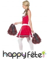Osez mettre en avant votre belle silhouette Mesdames ! Voici une tenue de sportive qui risque de plaire. N'avez-vous jamais rêvé d'incarner une Cheerleader, celle qui arrive à faire de multiples acrobaties et à toujours paraître attrayante grâce à sa tenue exceptionnelle ! C'est le moment de se faire plaisir avec cette belle robe assez courte mais distinguée, de couleur rouge et blanche, dont la découpe particulière met en évidence votre allure et vous permet de faire de vastes mouvements. Cette robe vous est proposée en taille M (40-42), S (36-38) ou XS (32-34). Pour compléter l'ensemble, vous disposerez des indispensables pom poms, qui sont de couleur rouge et noire. Complétez le déguisement en mettant des faux bas blancs ainsi qu'une paire de tennis de la couleur de votre choix. C'est parti, vous êtes la M-E-I-L-L-E-U-R-E!!!