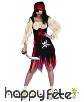 Déguisement de pirate zombie, pour femme, composé d'un haut, d'une jupe, d'une veste et d'un chapeau, tous de couleur grise. Si vous avez adoré la partie zombie des "Pirates des Caraïbes", ce déguisement est fait pour vous. Il vous permettra d'imiter les zombies pirates du film. L'ensemble est disponible en taille S, M, L ou X1.