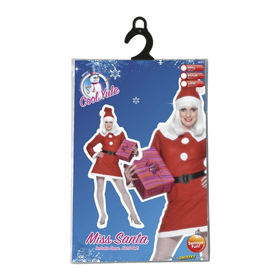 Déguisement de Mère Noël pour femme composé d'une robe, d'une coiffe et d'une ceinture. La robe et la coiffe sont rouges et blanches tandis que la ceinture est noire. Cet ensemble est disponible en taille S, M ou L. Servez-vous-en pour séduire votre partenaire à l'occasion de Noël.