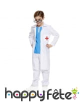 Laissez votre fils incarner un grand docteur avec ce déguisement de petit médecin en tablier, pour enfant. Il se compose d'une blouse blanche à manches longues, long jusqu'aux genoux, qui est ouverte sur le devant par des boutons, avec une fausse poche imprimée sur le côté gauche de la poitrine. Sous la blouse, nous avons un ensemble bleu, dont le haut est fait d'un type de tee-shirt à col V et à manches courtes, et le bas d'un pantalon élastique à la taille. Un masque assorti à l'ensemble bleu est fourni avec le déguisement, il est facile à porter grâce aux élastiques qui s'attacheront derrière les oreilles. Vous pouvez compléter la tenue avec un stéthoscope, à retrouver sur notre site !