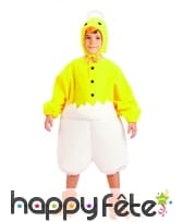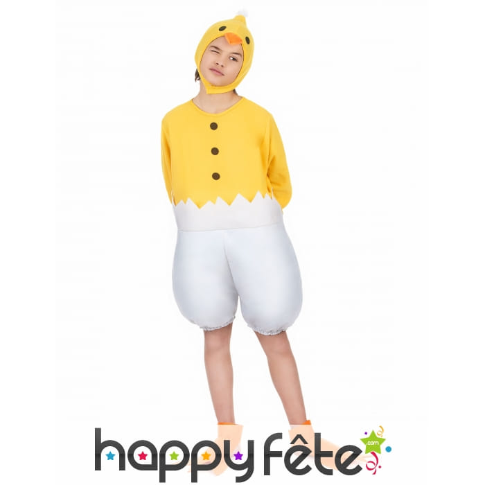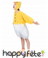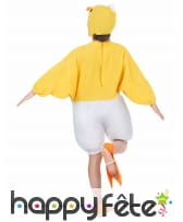 Quand un petit poussin sort pour la première fois de sa coquille, il est tout simplement mignon à croquer. Votre boutchou aussi sera adorable dans son tout premier déguisement de petit poussin jaune. Il ou elle sera habillé(e) d'une combinaison courte de couleur jaune et blanche. Les manches sont longues tandis que la longueur du bas descend juste en dessus des genoux. Des élastiques ont été disposés aux extrémités des manches et sur le bas de la combinaison pour souligner l'effet bouffant. Comme accessoire, disposez d'une coiffe représentant une tête de poussin jaune avec un bec orange. Les surchaussures sont de couleur orange et prennent la forme de pattes de poussin. Retrouvez l'article en différentes tailles, pour les 3 à 10 ans.