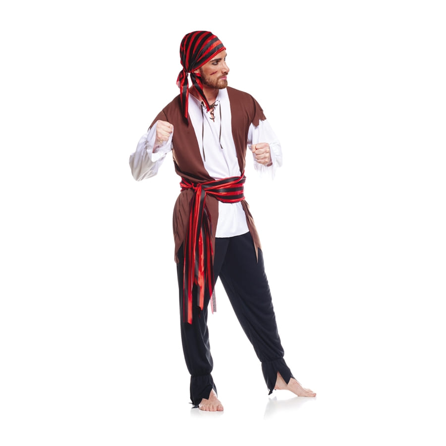 De nos jours, les déguisements de pirate restent une grande tendance, surtout pour des fêtes à thème Pirate et corsaire ou Action et aventure. Destiné à la gent masculine, vos amis vont adorer ce déguisement de pirate marron blanc pour adulte. Il est composé d'un pantalon noir et d'un chemisier blanc avec un gilet marron. Vous recevrez également une ceinture et un bandana à rayures noires et rouges. Pour parfaire le tout, voici quelques produits que nous vous conseillons également : une barbe de pirate ou un sabre de pirate parmi nos accessoires, des fausses cicatrices à poser sur le visage ou des tatouages temporaires, disponibles dans nos produits cosmétiques.