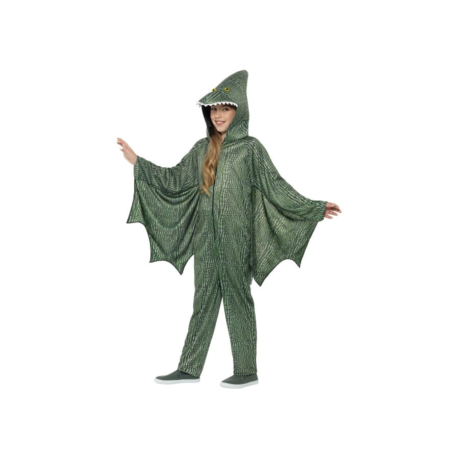 Faisons revivre ces espèces du passé dont la race s'est éteinte pour pérenniser la survie des autres races. Nous avons le costume de l'un des plus redoutables dinosaures : le déguisement de ptérodactyle pour enfant. Choisissez ce costume pour votre petite fille votre petit garçon, vous n'aurez qu'à lui enfiler cette combinaison tout-en-un à capuche de couleur verte, avec des ailes attachées de couleur verte elles aussi. Il n'y a pas plus simple déguisement ! La capuche est à ne surtout pas oublier, sans quoi le ptérodactyle serait sans tête. Ce déguisement est idéal pour une fête à thème animaux ou préhistoire.