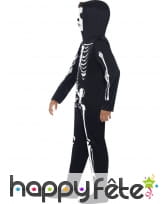 Il n'y a pas que les grands qui savent faire peur ! Loin des costumes d'Halloween amateurs pour enfants imitant les monstres des films d'horreur, ce costume ultra-réaliste va terrifier tout le quartier ! Votre fiston sera très fier d'effrayer les plus grands que lui. Le déguisement est composé d'une combinaison à manches longues de couleur noire. Un squelette est dessiné en blanc sur tout le long du costume. Une capuche est rattachée à la combinaison afin de ne laisser entrevoir aucune trace de peau, seulement des os. Effet assuré à condition de maquiller le petit garçon sur un fond blanc avec les yeux et le nez contournés de noir. L'ensemble se nettoie uniquement à sec, et est disponible en taille M(7-9 ans) et S(4-6 ans).