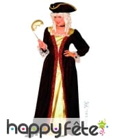 Voici un costume de tentatrice vénitienne pour le carnaval de Venise ou une fête à thème « autour du monde ». Il est composé d'un top, d'une belle jupe en cascade à ourlet plongeant dans le dos, ainsi que d'une coiffe couvrant le front et les yeux. Ce déguisement est destiné aux femmes dont les tailles sont L, M et S. La tenue est de couleur bordeaux, avec quelques ornements en noir. Arborez-la si vous voulez être la femme la plus sexy et la plus séduisante de la soirée. Et portez des chaussures ou des escarpins à talons hauts et aigus avec un collant filet de pêche pour embellir votre déguisement.