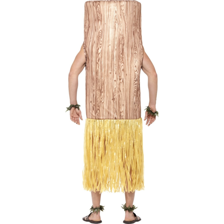 Nous connaissons tous ce que représentent ces bons vieux totems en bois. Ils sont sacrés et vous le serez vous aussi dès que vous aurez mis ce déguisement de totem que nous vous proposons ici. Vous deviendrez un vieux totem en colère avec ce tabard de couleur marron, sur lequel sont imprimés les yeux, le nez et la bouche du totem avec quelques ornements sur le haut. Il y a une ouverture en haut pour laisser votre visage à découvert. Une jupe, de type hawaïen et de couleur jaune, est attachée au tabard. Et vous aurez également, Messieurs, une paire de bracelets verts et une paire de chevillières vertes dans le déguisement.