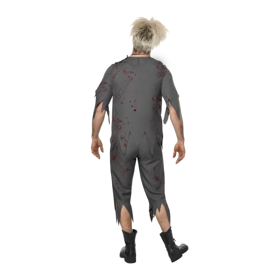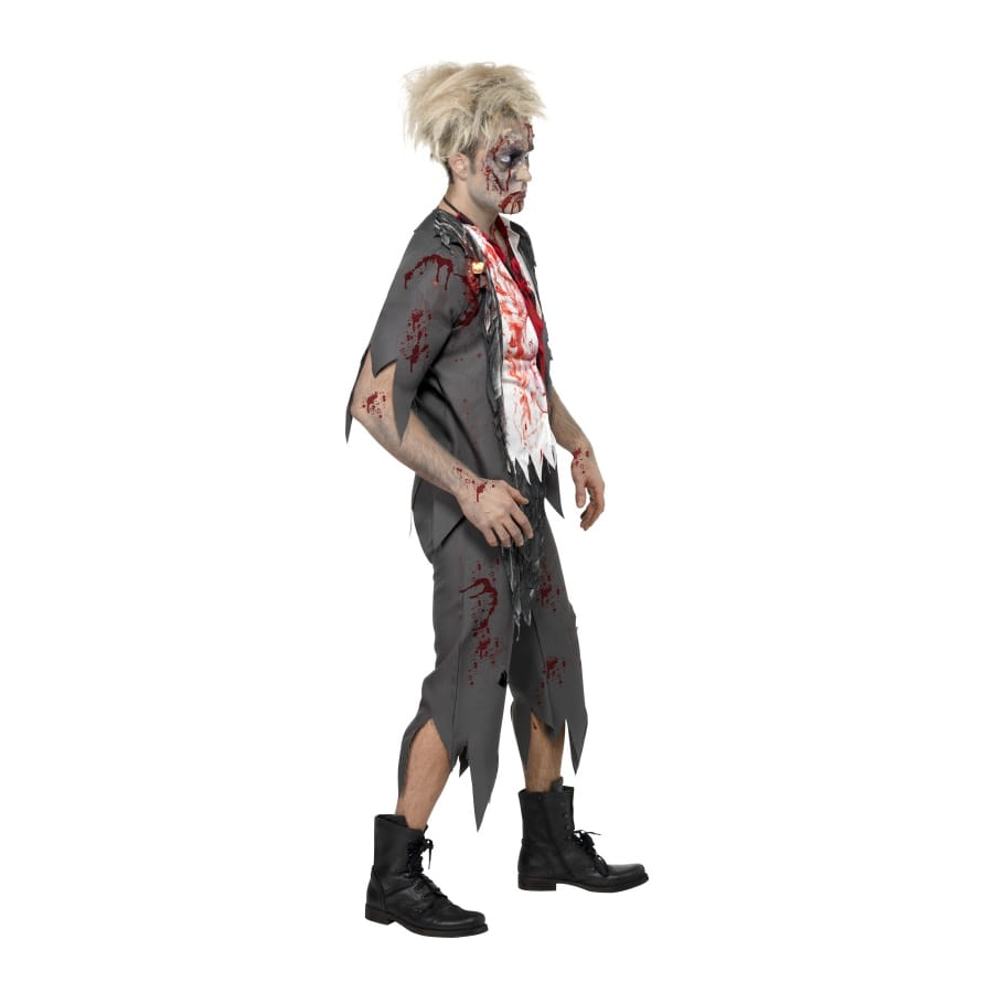 Set de déguisement de zombie écolier, pour homme, composé d'une veste grise avec chemise blanche tâchée de sang attachée, d'une cravate déchirée rouge et noire et d'un pantalon gris. Lors de la commande, vous aurez le choix entre une taille S, M ou L. Ce superbe ensemble de la marque Smiffy's fera fuir tous les enfants que vous rencontrerez!