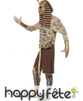 Le film " La Momie" nous a tous plongé dans un monde où légende et imagination se mêlent à la perfection. Toutes ces momies reviendront nous hanter la nuit d'Halloween avec ce déguisement de zombie pharaon très réaliste. Il est formé d'une tunique à manches longues de couleur marron muni de bracelets dorés, ceinturée à la taille par un ruban couleur or, et pourvu d'une coiffe de pharaon avec une tête de mort couvrant le visage. Le buste affiche une illustration de cage thoracique ensevelie tant bien que mal par les bandelettes de papyrus. Des spartiates montantes seront les chaussures les mieux appropriées à cette tenue, mais de simple sandales en cuir feront également très bien l’affaire. Il est disponible en tailles M (correspondant à poitrine de 96 - 101, entrejambe de 83 cm) et L (correspondant à poitrine de 106 - 110 cm et entrejambe 83,8 cm). Nettoyage à sec uniquement.