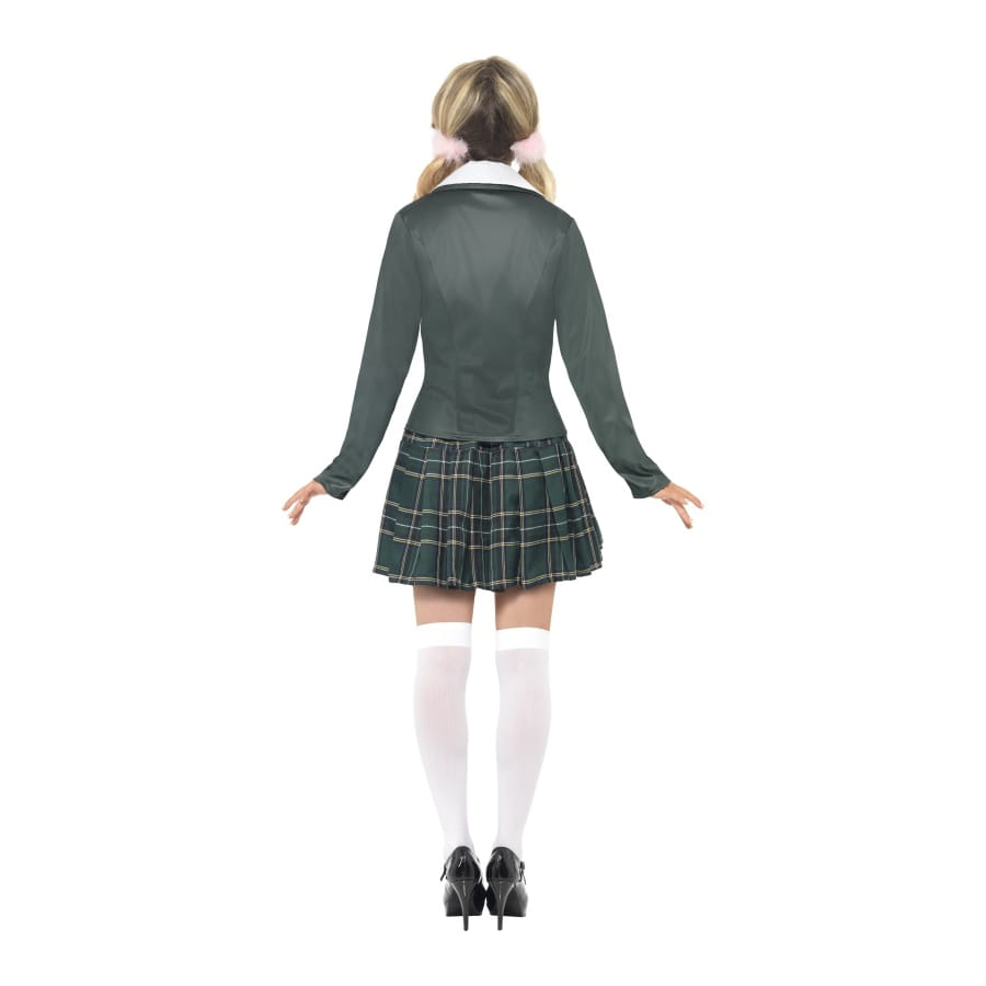 Déguisement d'écolière sexy, pour femme, composé d'un top blanc, d'un blazer vert et d'une jupe à carreaux verts. Cet ensemble est disponible en taille S, M ou L. Vous rendrez réels les fantasmes de votre partenaire avec cette tenue sexy!
