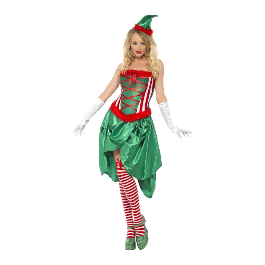 Ce déguisement elfe burlesque pour femme vous pourrez la porter pour une fête ayant pour thème conte de fée, magie ou encore pour la noël. Ce costume est composé d'un chapeau vert et rouge, d'un corset vert, blanc et rouge avec des lacets devant ainsi que d'une jupe verte courte.
