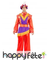 Déguisement d'aide de Père Noël, pour homme, composé d'un top rouge et vert avec boutons et grelots dorés, d'un pantalon rouge, d'un chapeau rouge et vert et d'une ceinture noire et dorée. Choisissez entre une taille S, M ou L au moment de votre commande. Devenez l'aide du Père Noël et participez à la distribution des cadeaux.