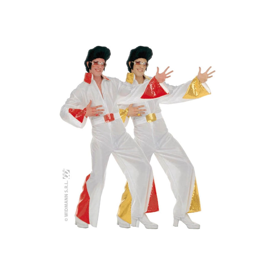 Avec ce déguisement, devenez le King du disco et du rock'n roll. Célébrez la fête de la musique en famille ou entre amis en incarnant le célèbre Elvis Presley avec sa banane grâce à ce déguisement blanc. Pour entrer dans la peau du personnage lors d'une soirée costumée des années 80, cette combinaison blanche avec empiècement or ou rouge sera indispensable. Il n'est pas possible de choisir la couleur des empiècements, vous recevrez la combinaison blanche et rouge ou blanche et dorée en fonction des disponibilités du stock.
