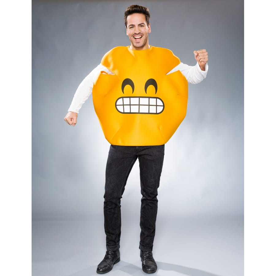 Vous pensez que vos précédents déguisements manquaient de créativité et ne correspondaient pas du tout à votre personnalité ? Pour votre prochaine fête déguisée, ne vous contentez plus d'enfiler le premier déguisement qui vous tombe sous la main. Nous proposons ici un déguisement très original destiné à une personne exceptionnelle. Pour homme ou femme, ce déguisement émoticône sourire vous redonnera vraiment l'envie de vous déguiser. Idéal pour une fête sur le thème Humour, il est composé d'une tunique en mousse orange dotée d'orifices pour la tête et les bras. Ce déguisement à la forme ronde représente une tête souriant à pleines dents. De la bonne humeur en perspective avec ce déguisement.