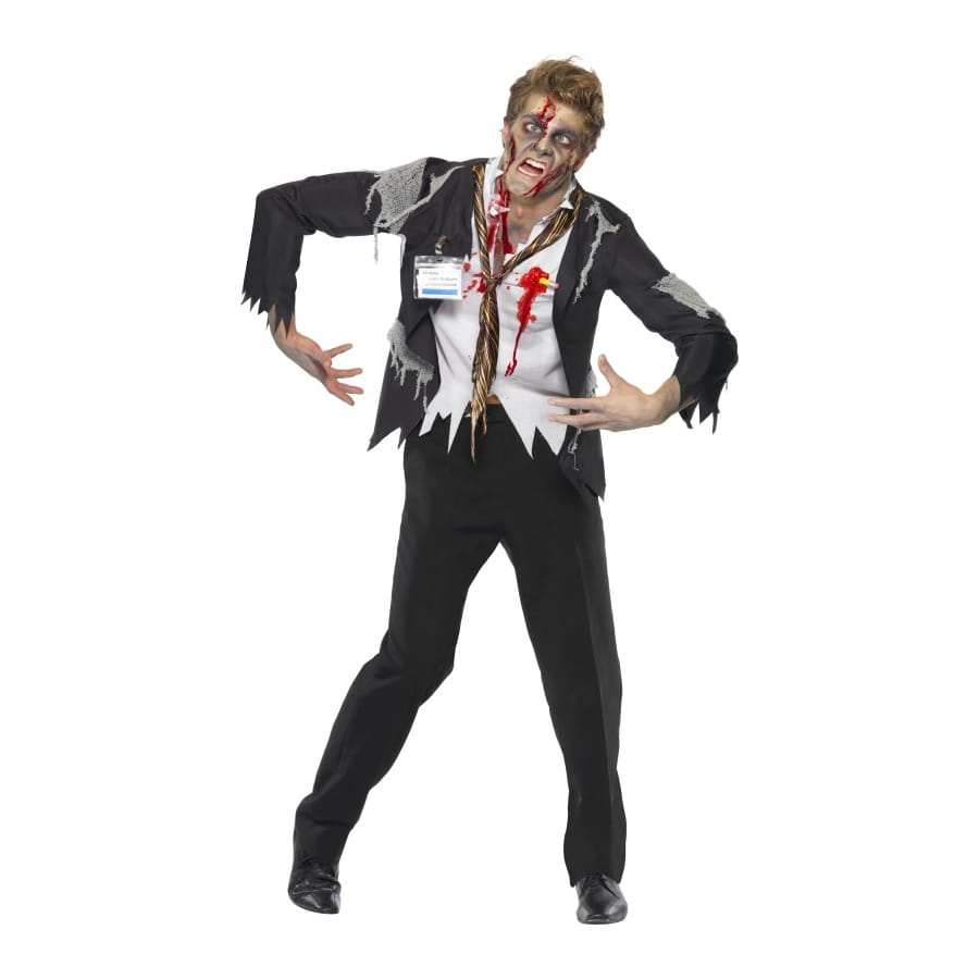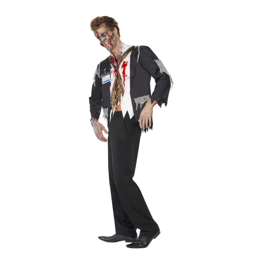 Ce costume d'employé zombie sera parfait pour Halloween. Tout le monde sera effrayé par votre déguisement. De taille L , vous pourrez aussi le mettre pour un thème comme horreur. Il est composé d'une chemise blanche avec t-shirt attaché, d'une cravate noir ainsi que d'un badge blanc et bleu.