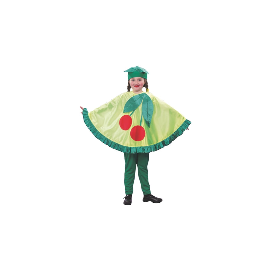 Des enfants amoureux de la nature arboreront sans doute avec joie ce déguisement de cerise pour enfant, fille ou garçon, formée d'une cape verte ornée de 2 grosses cerises rouges, ainsi que d'une coiffe assortie. Tenue idéale pour une fête sur le thème de la nature ou pour une pièce à l'école. Disponible en taille 128 cm.