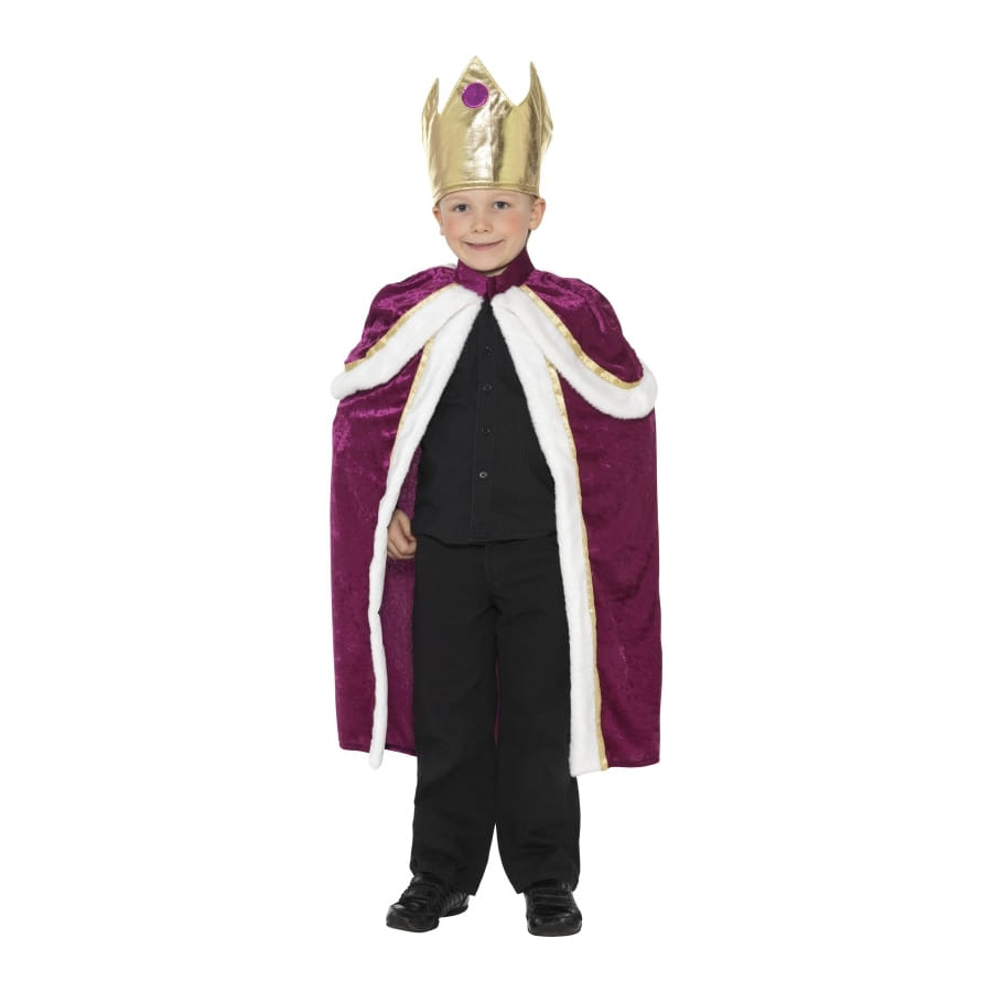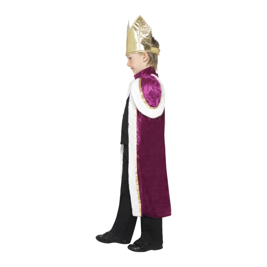 Déguisement d'enfant roi composé d'une robe blanche et bordeaux et d'une couronne dorée et bordeaux. Vous pourrez choisir entre une taille S, M ou L lors de la commande. Ce déguisement est idéal pour une fête basée sur les contes de fées.