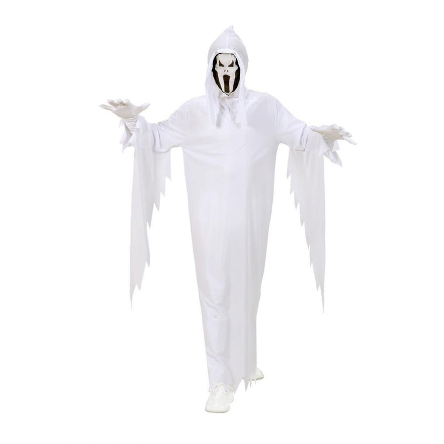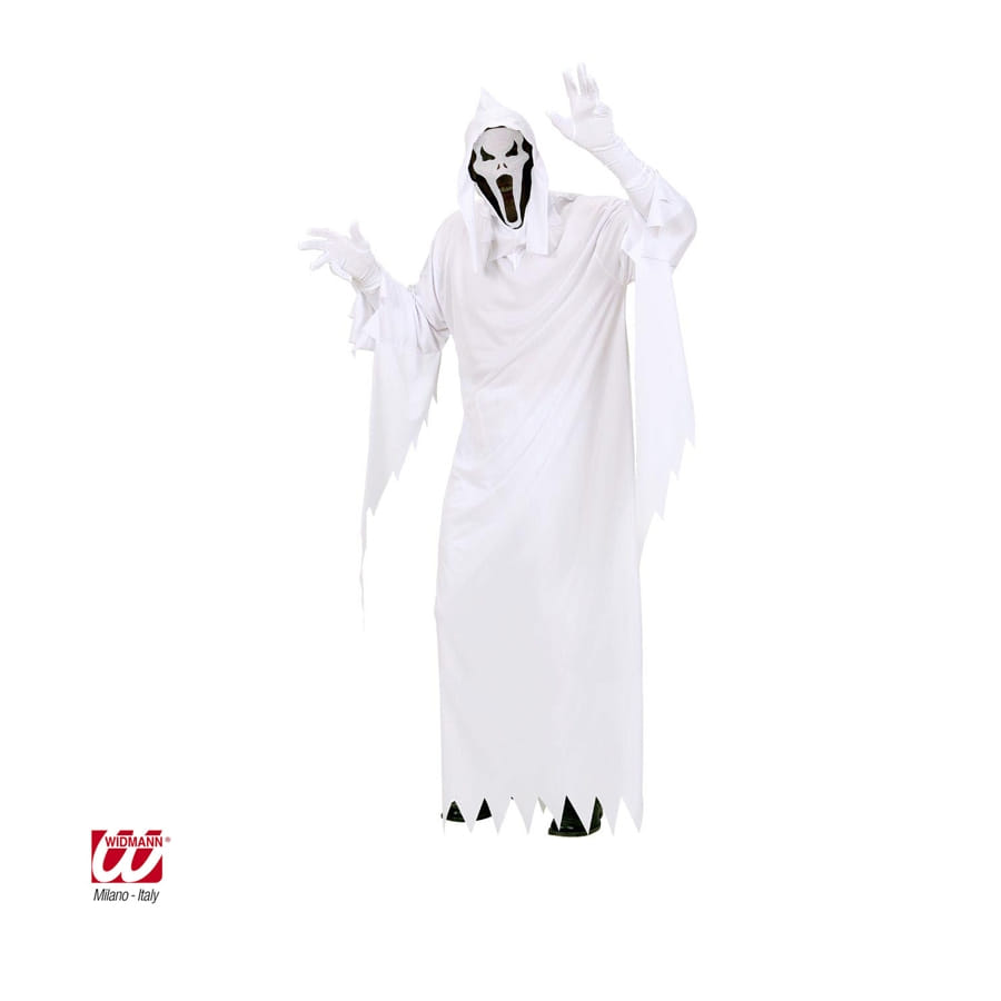 Vos amis ainsi que vos proches vont frémir lorsqu'ils vous verront dans ce déguisement. Ce costume de taille L vous pourrez le mettre pour Halloween ou une fête ayant pour thème frisson, horreur ou farce. Ce déguisement tout en blanc est composé d'une robe manches longues et d'une cagoule qui couvre complètement la tête.