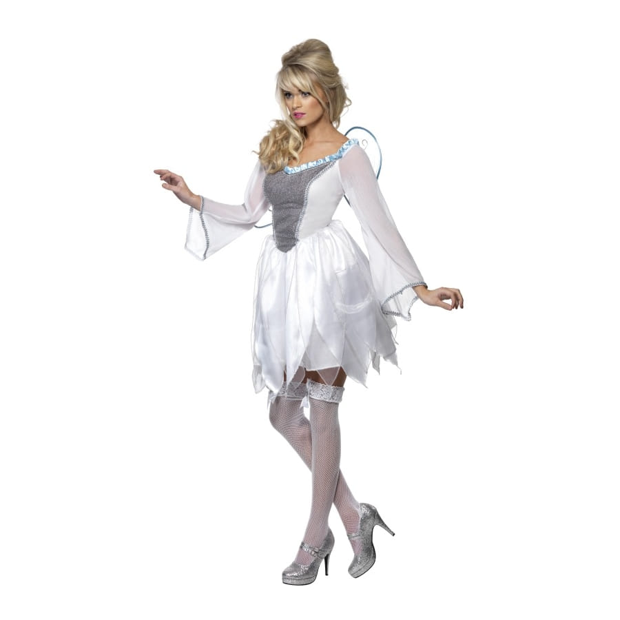 Ce magnifique costume de taille L est un déguisement de fée d'hiver. Il est composé d'une robe manche longue blanc et argenté, la robe est courte. Il y a aussi une paire d'aile. Vous pourrez porter ce déguisement pour la noël ou encore un anniversaire, nouvel an ou même pour le carnaval.
