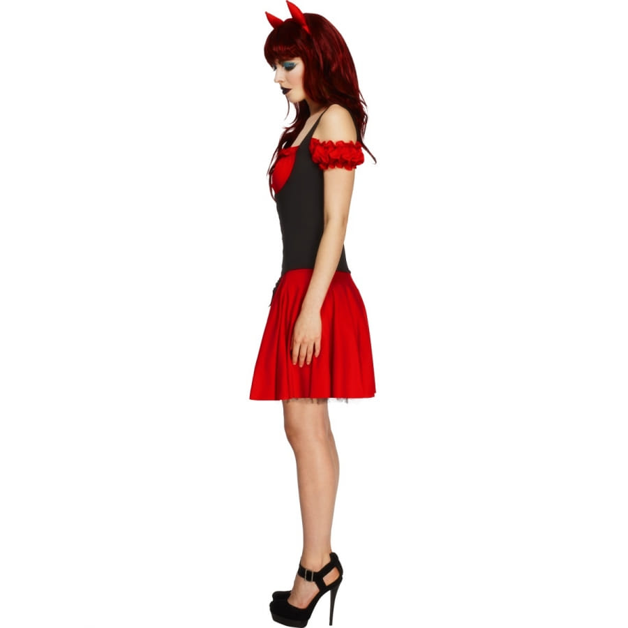 Déguisement de diablesse, pour femme, composé d'une robe rouge avec corset et dessous en tulle noirs ainsi que d'une paire de cornes rouges. Cet ensemble vous est offert en taille S, M, L ou XL. Personne ne résistera à votre charme une fois cette tenue enfilée!