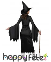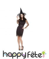 Mais attendez, ce n'est pas tout ! Pour mettre en valeur cette robe, nous y avons ajouté une ceinture qui se noue délicatement dans le dos, pour souligner votre silhouette. Et pour parfaire votre look de sorcière, un grand chapeau de feutre noir vient coiffer l'ensemble. Sa particularité ? Son bord est renforcé par du métal, ce qui le maintiendra parfaitement en place tout au long de la soirée, même si votre tour de tête avoisine les 58 cm.
