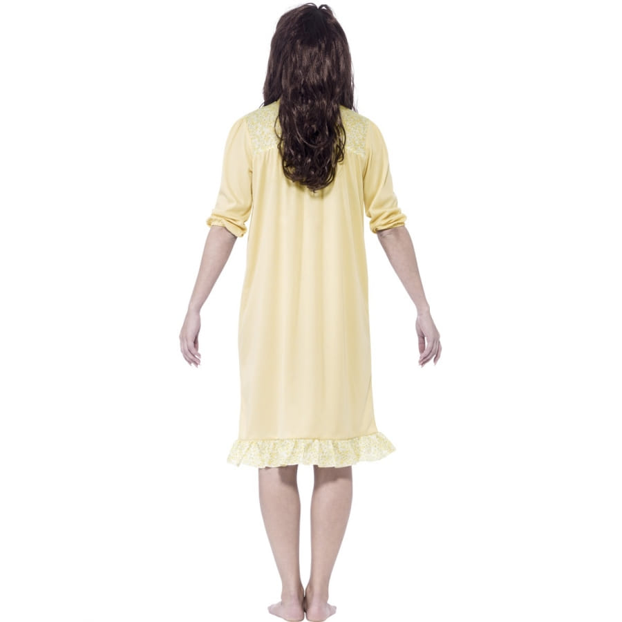 Vous allez nous dire en voyant ce déguisement de femme zombie en robe de nuit que les costumes de zombie sont trop courants lors des soirées d'Halloween, mais celui-ci n'est pas n'importe lequel. Ce costume que vous voyez ici est beaucoup plus réaliste et comprend une robe de nuit classique de couleur jaune taché de sang rouge un peu partout pour un meilleur effet. Il comprend également une perruque longue à franges de couleur châtain foncé. Tout cela est proposé en tailles L, M, S et XS pour femme. Dans nos accessoires, vous trouverez des lentilles pour avoir un vrai regard de zombie ainsi qu'un maquillage pour avoir le teint pâle, et des taches de sang pour la peau et les vêtements si vous voulez en rajouter un peu.
