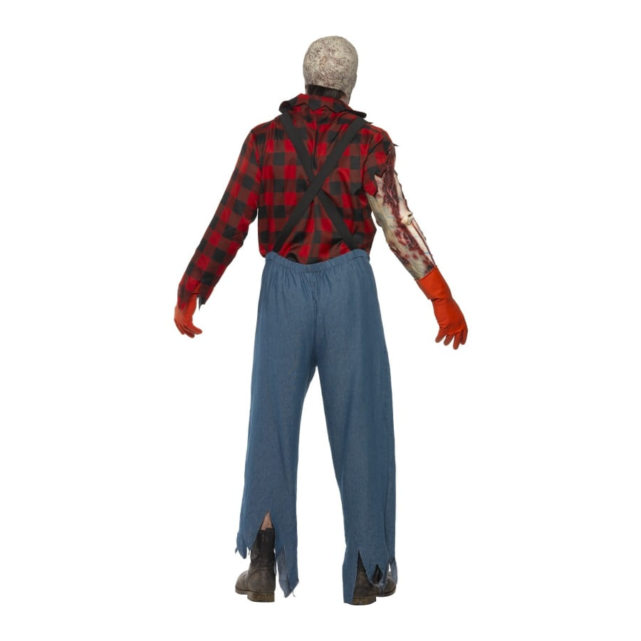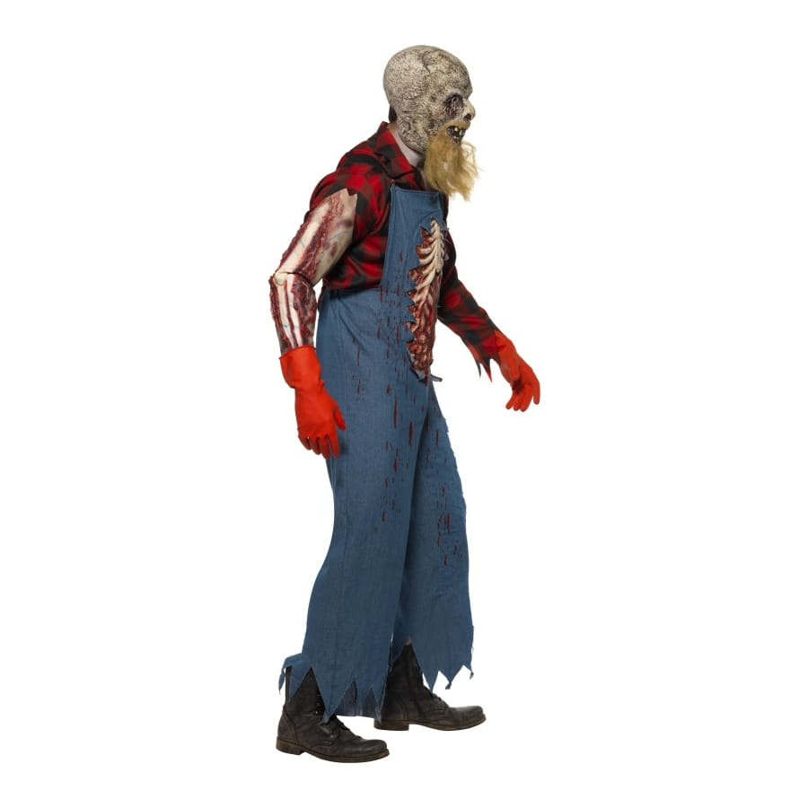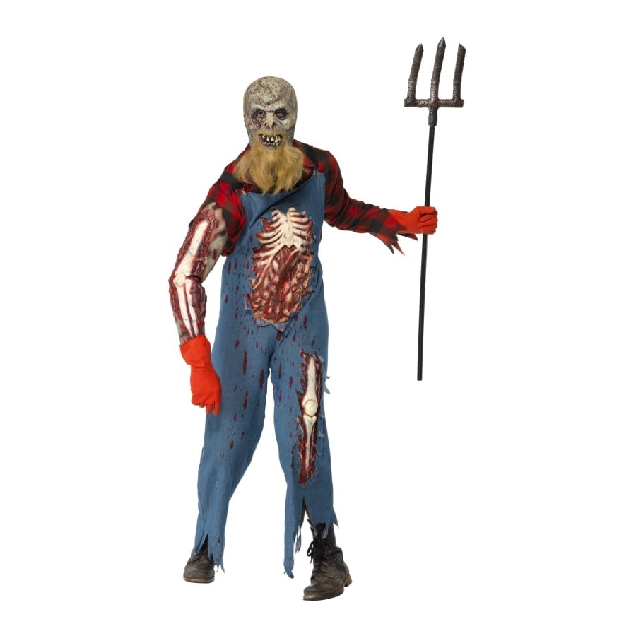 Déguisement de fermier zombie, pour homme, composé d'une combinaison, d'un masque avec barbe, de manches en latex et de gants. Le déguisement est agrémenté de latex représentant des os ensanglantés et protubérants. Il est disponible en taille M ou L. Vous pouvez êtes sûr que vous serez effrayant pour Halloween.