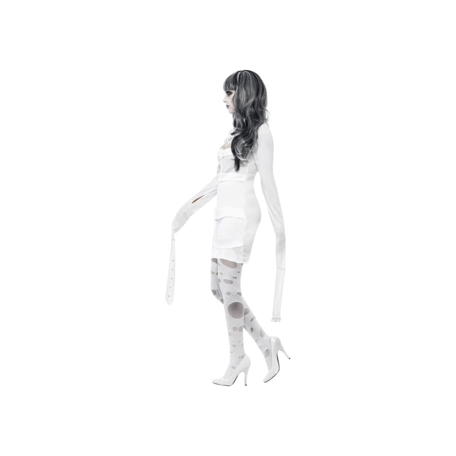 Déguisement de folle de couleur blanc, pour femme, composé d'une robe et d'une camisole. Le tout est disponible en taille S, M ou L. Ces deux accessoires feront de vous une échappée de l'asile plus que crédible. Ajoutez-y une expression creuse pour le look complet!