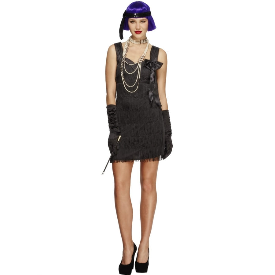 Une belle soirée, une belle fille... et il ne nous manque plus qu'une belle tenue pour que tout soit réussi. Ceci est un déguisement Foxy Charleston pour dame, il est de couleur noire et est disponible en taille S(36-38), M(40-42), et L(44-46). Notre charmant costume est constitué d'une robe, d'une paire de gants et d'un bandeau. Légère et classe, il se porte avec des chaussures fermées à talons hauts évidemment! Et si vous voulez pousser encore un peu plus le personnage de la jolie danseuse des années 20, vous pouvez vous pavaner avec un fume-cigare pendant la petite soirée. Cet ensemble confirmera votre élégance naturelle à l’occasion de la nuit du réveillon, par exemple, histoire de finir en beauté une année bien pleine. Nettoyage à sec conseillé.