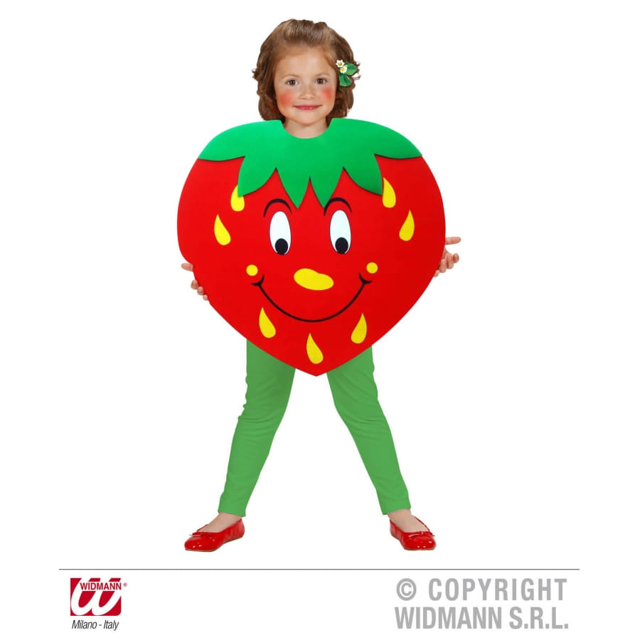 Costume de fraise pour enfant composé d'un visage rouge, vert et jaune à porter sur le devant et à attacher à l'arrière avec l'élastique. Cet accessoire pour enfant de 2 à 5 ans mesure 98 à 116 centimètres et est vendu sans le justaucorps. Cet accessoire est parfait pour un spectacle ou pour un goûter d'anniversaire.