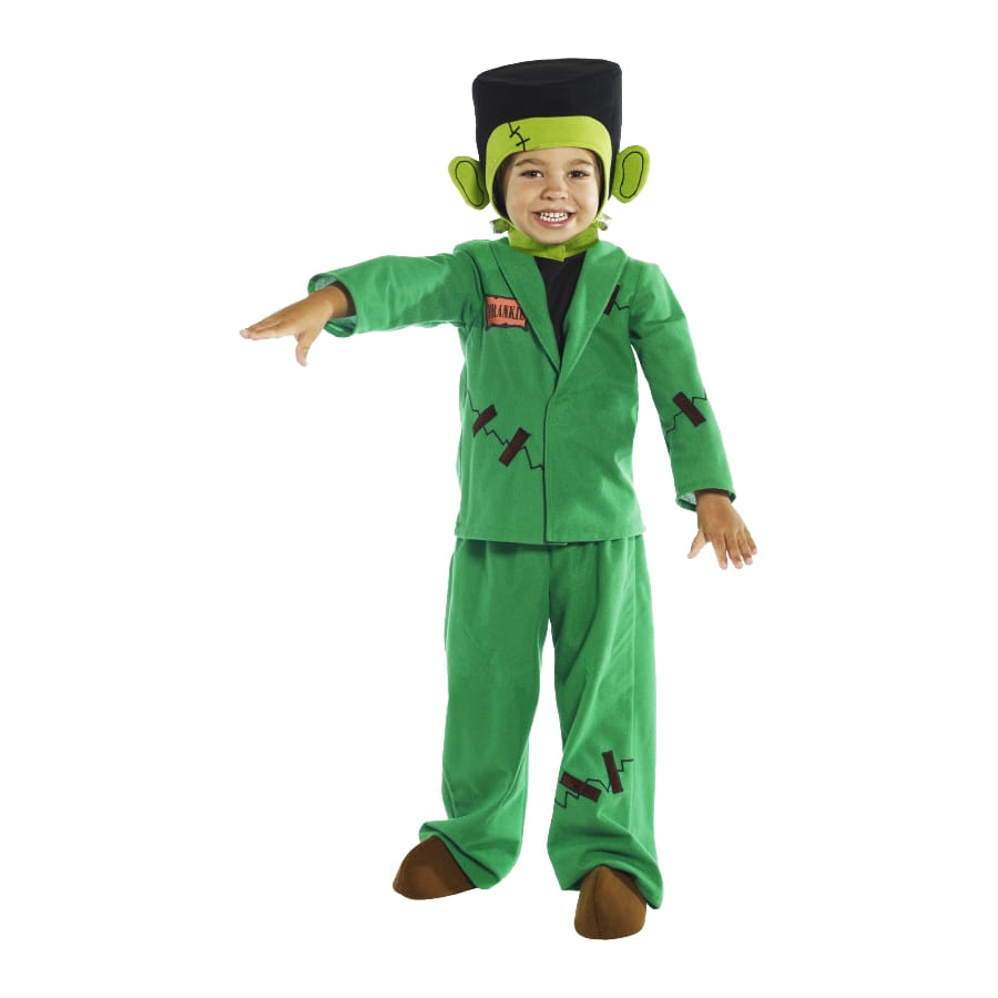 Déguisement de Frankenstein de couleur verte, pour enfant de 3 à 4 ans, composé d'une tunique, d'une veste, d'un pantalon, d'une coiffe et d'une paire de surchaussures. Ce déguisement fera de votre enfant un petit monstre tout mignon.