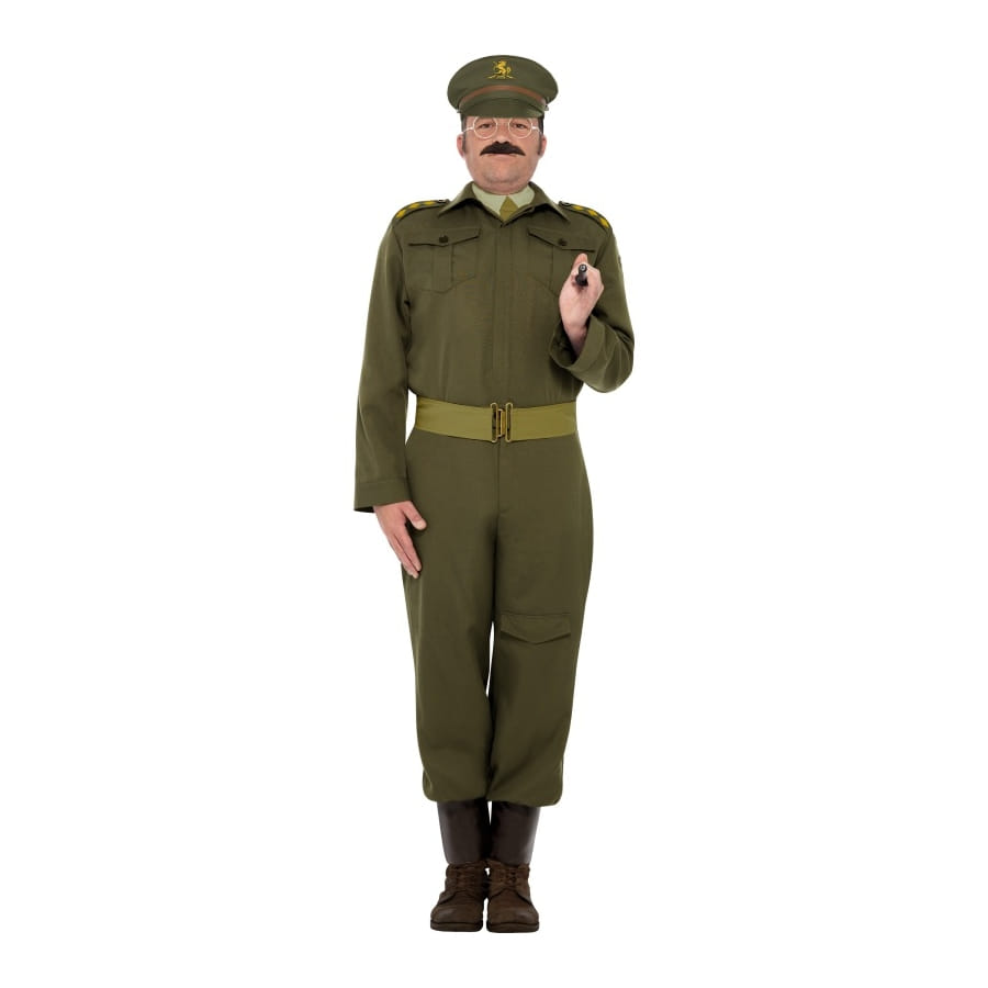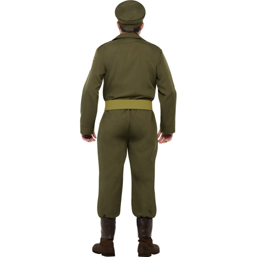 Déguisement de soldat de la Seconde Guerre Mondiale de couleur kaki, pour homme, composé d'une veste, d'une ceinture, d'une casquette militaire, de bracelets de cheville et d'une fausse cravate. Cet ensemble est disponible en taille S, M ou L. Il fera de vous un officier allemand très réaliste.