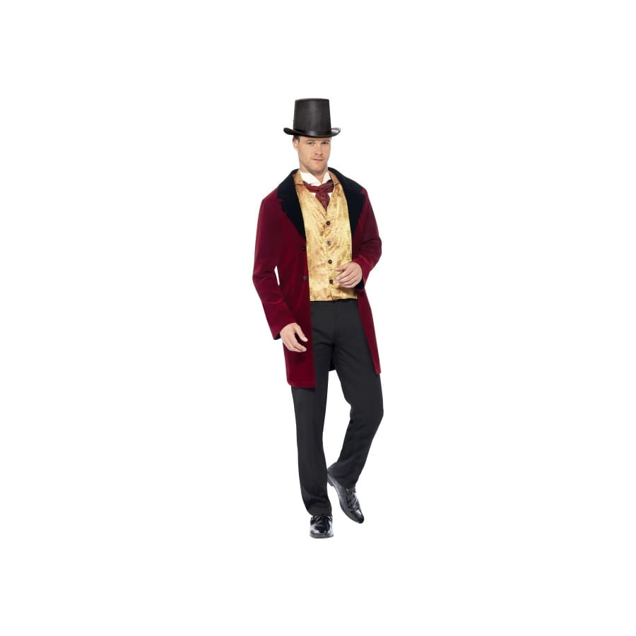 Tous les hommes se disent gentlemen, mais ne s'habillent pourtant pas comme les vrais gentlemen le faisaient d'antan, lors de l'époque Edouardienne. De ce fait, pour vous donner une chance d'en devenir un vrai, nous vous proposons ce déguisement de gentlemen de l'époque Edouardienne. Vous pourrez alors porter cette jolie veste de couleur grenat avec un col noir, ce faux gilet de couleur marron, que vous ornerez avec cette cravate de couleur grenat. Vous n'aurez qu'à rajouter un pantalon noir et des chaussures bien cirées, et vous voilà en parfait gentleman. Nous mettons à disposition les tailles L et M pour ce déguisement que nous vous proposons Messieurs.