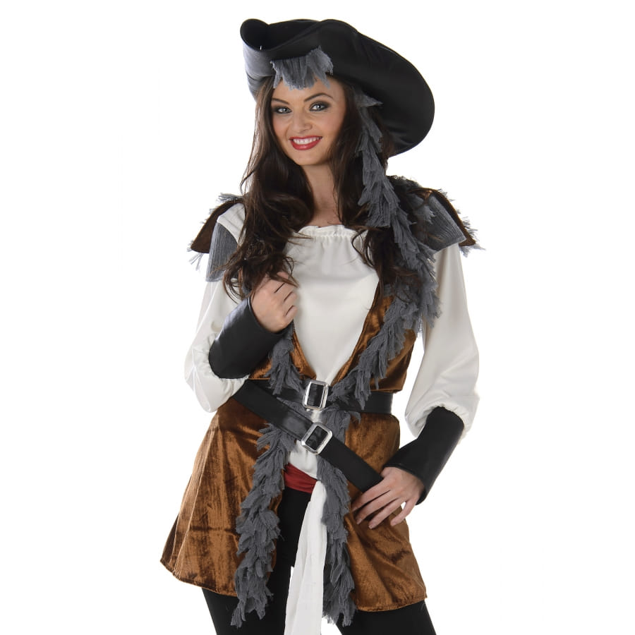 La courageuse corsaire qui sommeille en vous se mettra en avant une fois que vous aurez enfilé ce déguisement gilet marron de femme Pirate.
