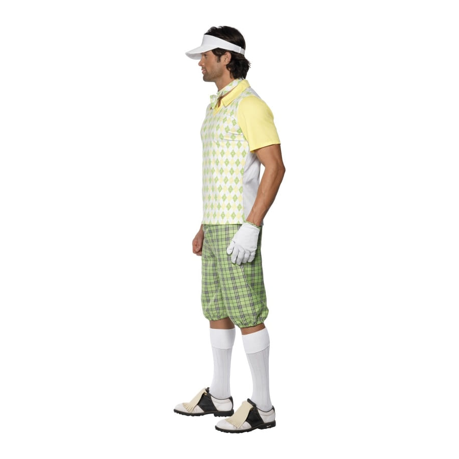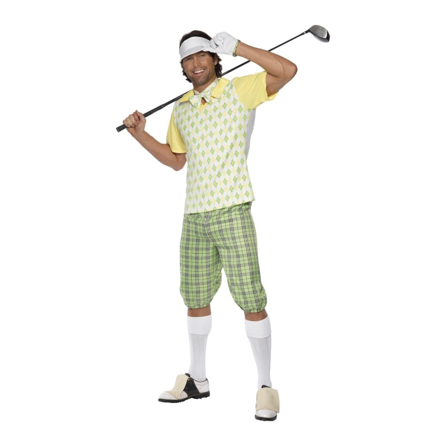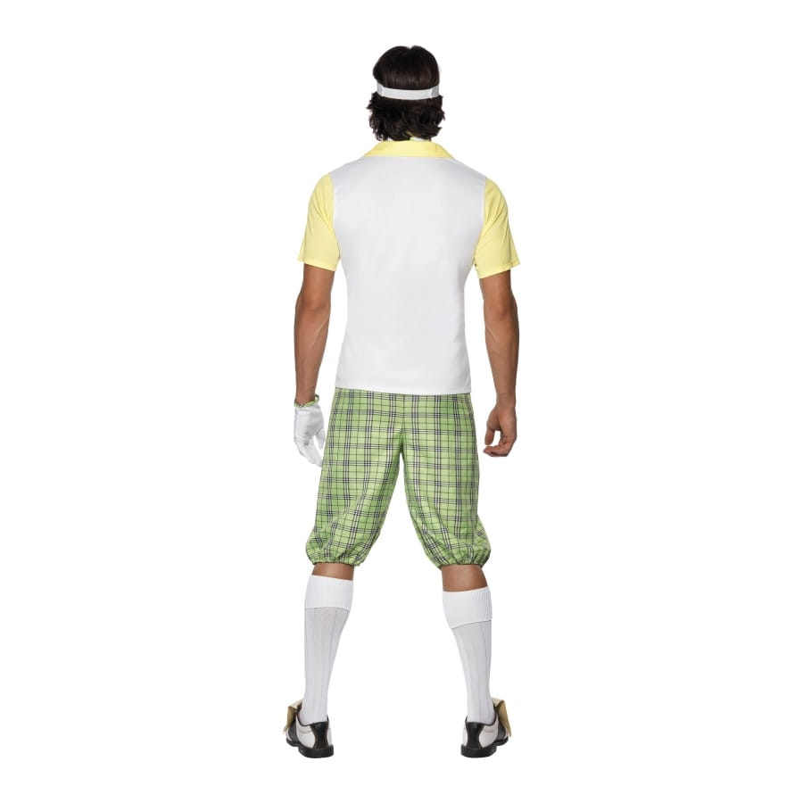 Déguisement de golfeur composé d'une casquette blanche, d'un short à carreaux verts, d'un top jaune et vert, d'un noeud papillon blanc et d'un gant blanc. Cet ensemble est disponible en taille S, M ou L. Déguisez-vous en star du golf avec ce superbe assortiment d'accessoires.