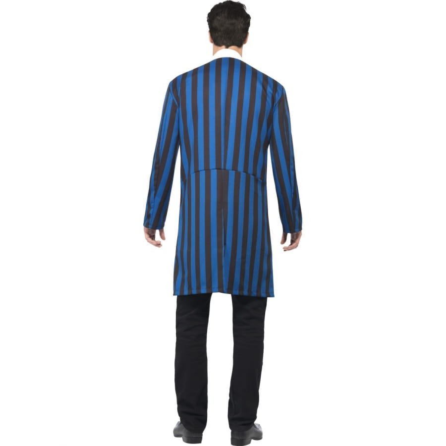 Messieurs, à l'occasion de la fête Halloween, faites peur à vos amis en adoptant ce beau costume sous licence de La Famille Addams. Vous allez incarner le personnage fou à lier qu'est Gomez Addams. Vous disposerez d'un costume à rayures verticales bleues et noires, avec un faux tee-shirt et un petit noeud noir par dessus. Il se nettoie uniquement à sec. Ne cherchez pas loin, vous pouvez porter un simple pantalon noir et des chaussures noires, ils iront très bien avec l'ensemble. Pour atteindre une ressemblance parfaite avec le célèbre personnage, n'oubliez pas la fausse moustache et le cigare. Devenez la star de cette fête d'Halloween ! Disponible en taille L (Poitrine 106 - 110 cm, entrejambe 83,8 cm) et M (Poitrine 96 - 101 cm, entrejambe 83 cm).