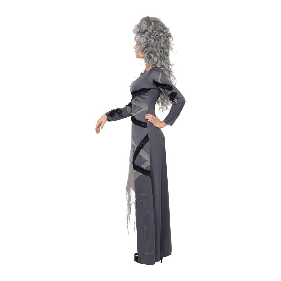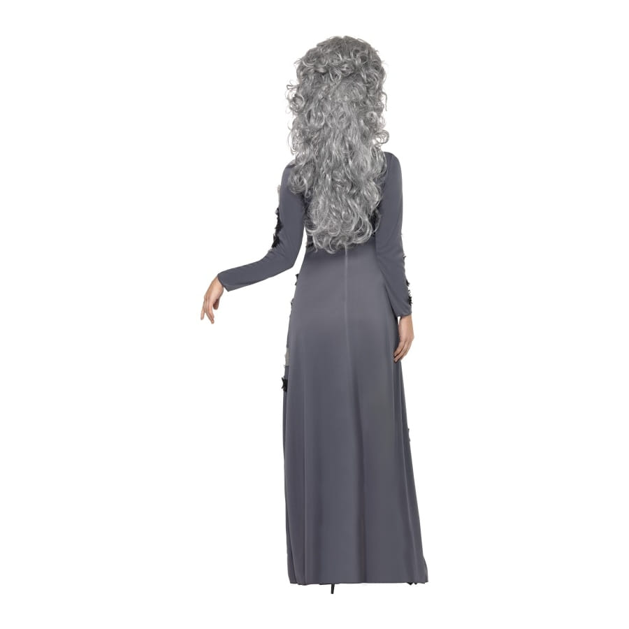 Déguisement de mariée gothique, pour femme, composé d'une longue robe grise et noire déchiquetée. Elle est disponible en taille S, M ou L. Vous deviendrez une mariée mort-vivante ou fantôme!