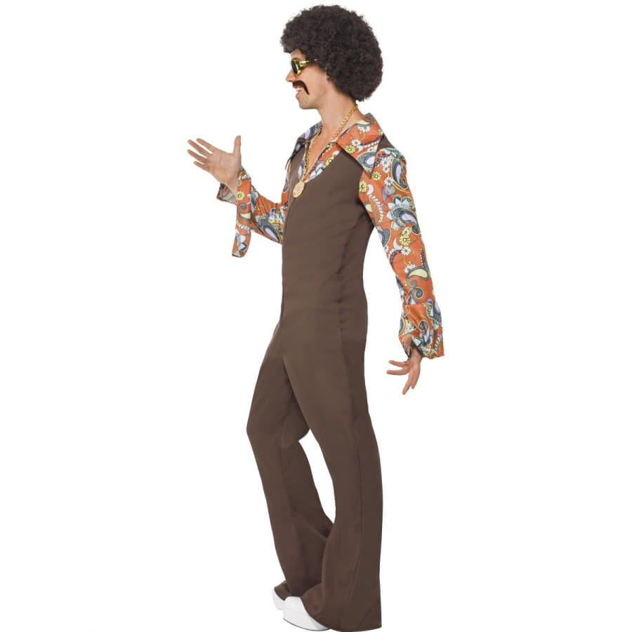Une soirée disco avec une tenue appropriée nous donne une soirée réussie!! Voici une tenue à la Jackson Five qui fera votre plaisir et celui de vos amis. C'est un déguisement groovy boogie pour homme, composé d'une combinaison marron avec fermeture sur le devant et d'une chemise multicolore rattachée. A porter avec des bottes blanches, des lunettes seventies noires, une perruque afro et pour clore le tout une fausse moustache. Allure hippie tu auras, une soirée d'enfer tu passeras! Ce déguisement est disponible en taille M (correspondant à poitrine de 96 - 101 cm, entrejambe de 83 cm), L (correspondant à poitrine de 96 - 101 cm, entrejambe de 83 cm), XL (correspondant à poitrine de 96 - 101 cm, entrejambe de 83 cm). Il est conseillé de le nettoyer à sec uniquement.