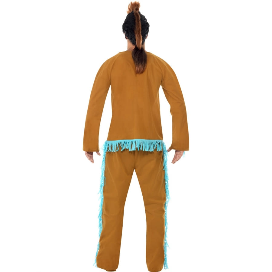 Un déguisement de guerrier indien vous pourrez porter ce déguisement pour le carnaval ou encore une fête autour du monde. Vous serez un magnifique indien dans ce costume. Il est composé d'une tunique de couleur marron et bleu avec des franges bleu dessus, ainsi que d'un pantalon marron qui aussi des franges bleu.