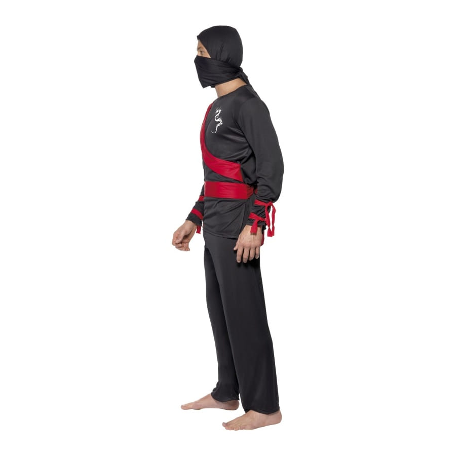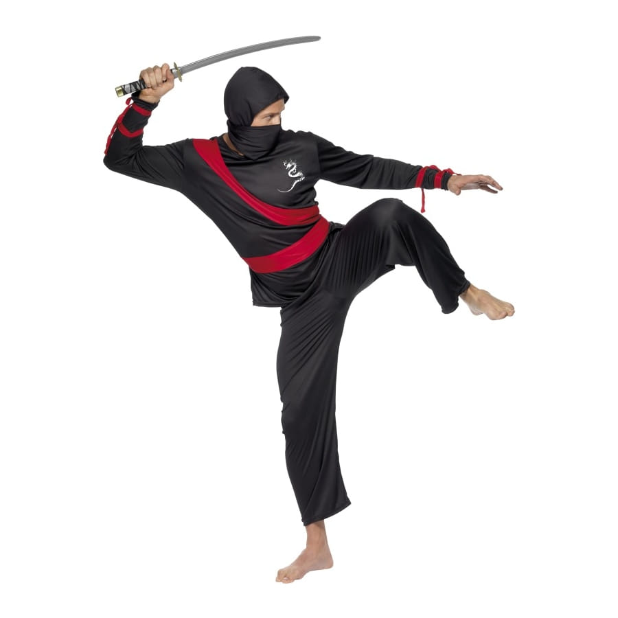 Si vous partez a une fête ayant pour thème les arts martiaux ou même manga, ce déguisement vous sera utile. Disponible en taille L et M il est composé d'un top noir avec un bande rouge dessus, d'un pantalon et d'une capuche.
