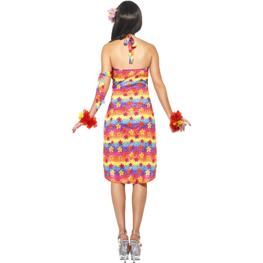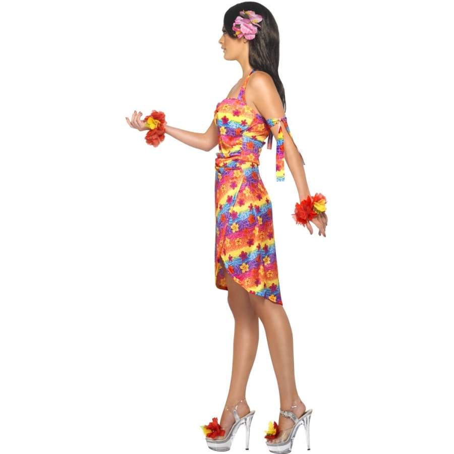 Un costume hawaïenne pour fille, ce costume vous pourrez le porter pour une fête comme les Antilles ou encore une soirée exotique. Il est composé d'une robe sans manche multicolore, la robe est courte. Le costume est aussi composé d'une fleur pour cheveux.