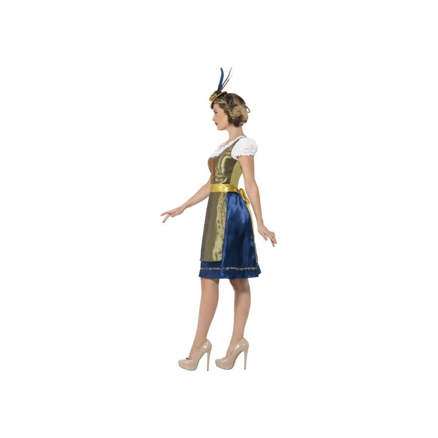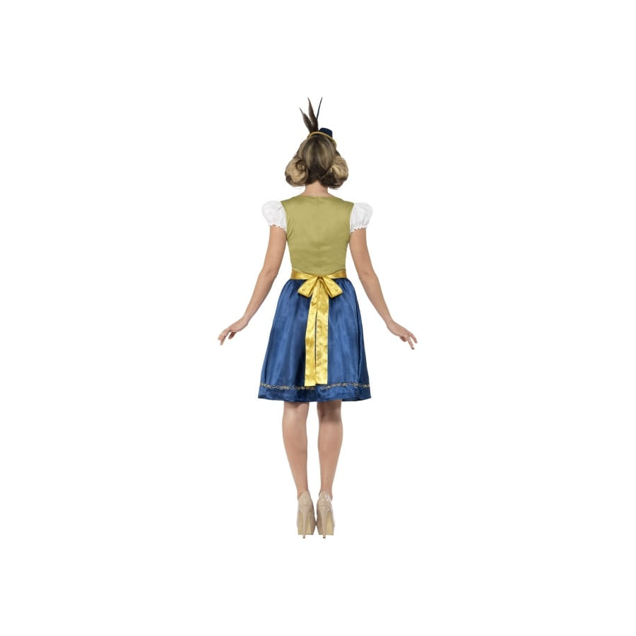 Un déguisement de style bavarois n'est jamais une mauvaise acquisition car il y a tellement d'occasions où vous pourriez le porter. La robe composant le costume est très simple, avec ses petites manches bouffantes, de couleur blanche comme tout le haut de la robe, et le bas de la robe est de couleur bleue avec des ornements dorés. Le tout est accompagné d'un tablier de couleur marron, auquel vous pouvez rajouter une ceinture pour marquer votre taille, comme le ruban jaune sur la photo. Et dans cette même optique, vous pouvez également ornementer ce déguisement avec de magnifiques accessoires disponibles dans la section accessoires du site.