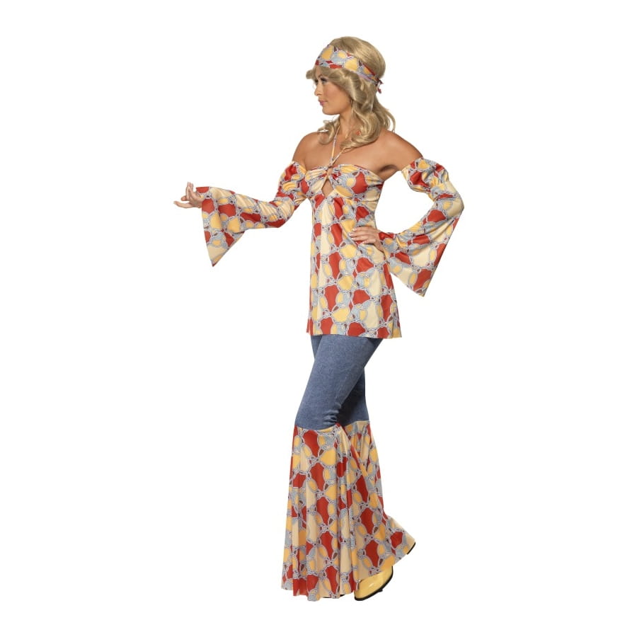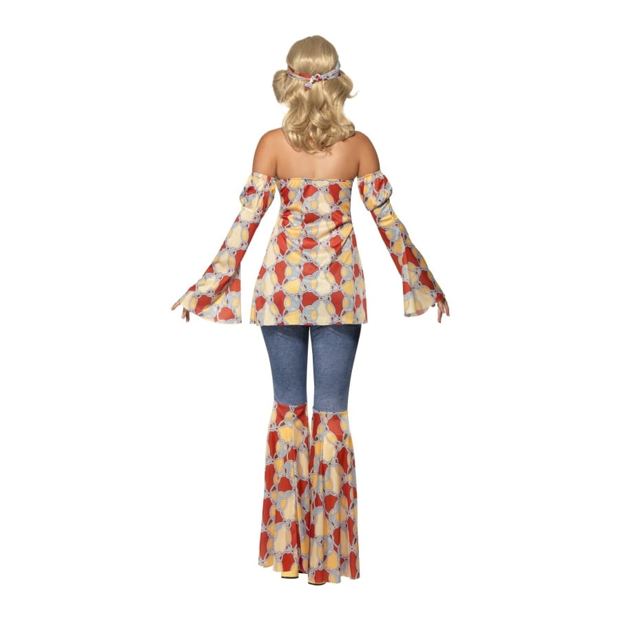 Adoptez ce look de hippie pour votre fête inspirée des années 60! Composé d'un haut dos nu, d'une paire de manches larges et d'un bandana pour cheveux, cet ensemble est disponible en taille S, M ou L. Les motifs imprimés sont à la fois doux et chics, vous donnant une apparence attirante et féminine.
