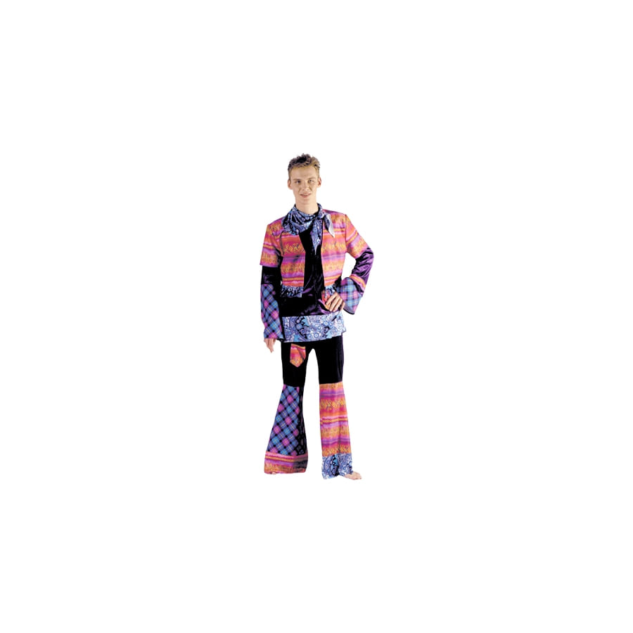 Pour retourner dans les années 50 ou 60, vous avez la totale avec ce déguisement hippie de style patchwork, constitué d'une tunique aux manches larges, d'un gilet, d'un pantalon pattes d'éléphant et d'un foulard, le tout clinquant de mille et une couleurs. Sans aucun doute, ce look vous ramènera dans vos lointains souvenirs le temps d'une soirée. Il est proposé en taille 54/56.