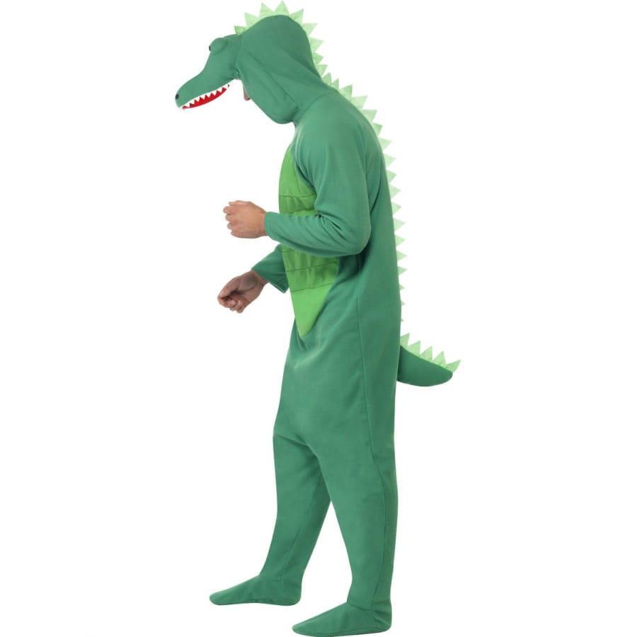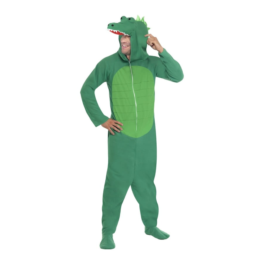 Un costume d'homme crocodile, ce déguisement vous pourrez le porter si vous incarner une mascotte ou encore pour une fête ayant pour thème animaux. Il est composé d'une combinaison avec capuchon, il est de couleur vert avec fermeture éclaire sur le devant, le capuchon est la tête du crocodile.