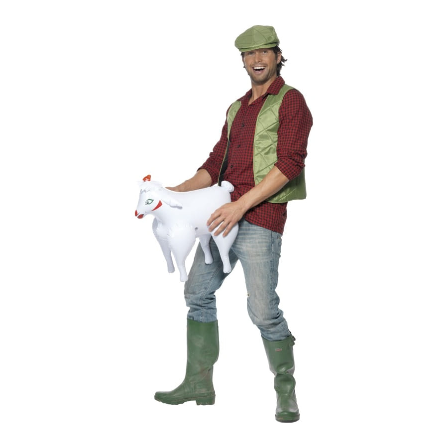 Pour un enterrement de vie de garçon ceux qui ont le sens de l'humour peuvent porter ce déguisement. Vous pouvez aussi incarner un fermier avec ce déguisement. Il est composé d'une chemise, d'un gilet vert, d'une casquette verte et d'un mouton blanc.